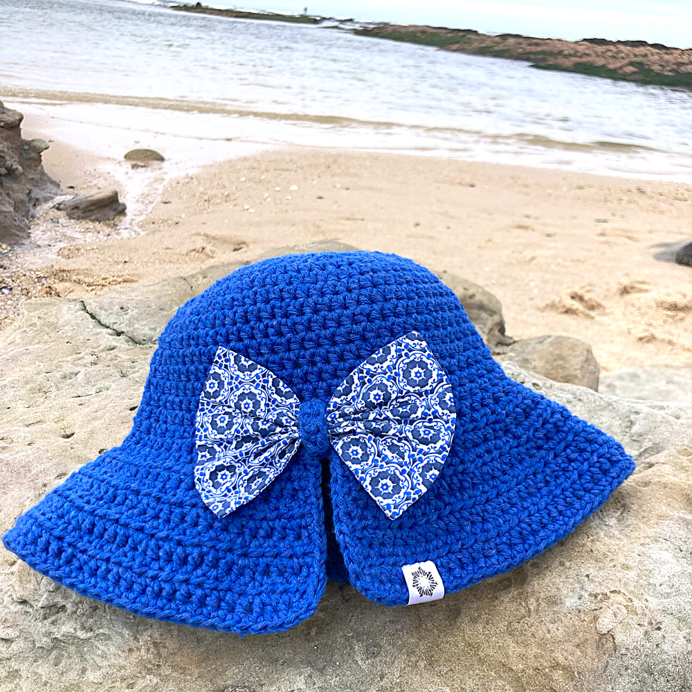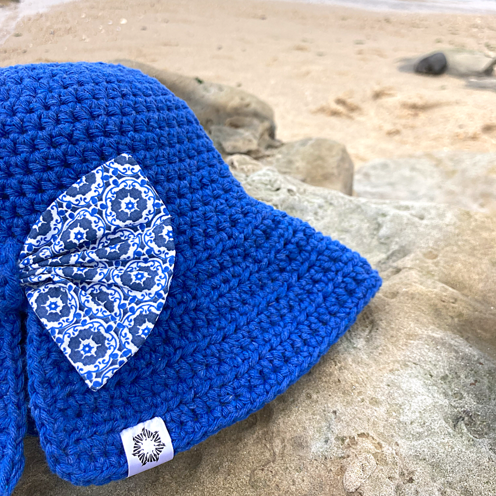 Handmade crochet hat of Portuguese produced recycled cotton yarn.